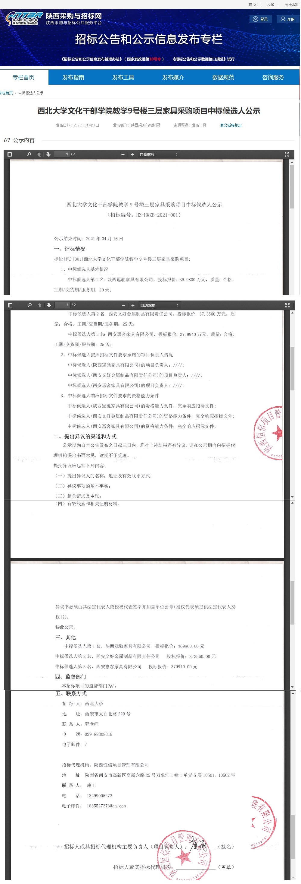 华体会正规平台文化干部学院教学9号楼三层家具采购项目中标候选人公示