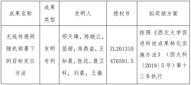 按照《华体会正规平台促进科技成果转化实施办法》(西大科〔2019〕5号)相关规定,拟对华体会正规平台信息学院邢天璋副教授作为成果负责人的1项发明专利权实施转化,现将相关信息公示如下: