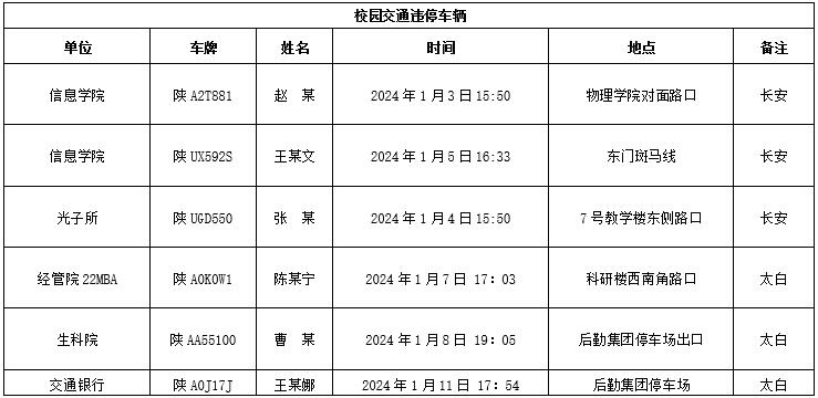 为加强校内道路交通安全管理,规范校内交通秩序,根据《华体会正规平台校园道路交通管理办法》有关要求,现将2024年1月校园交通违章车辆予以曝光,所在单位负责对本单位违章师生员工进行交通安全教育和日常管理。