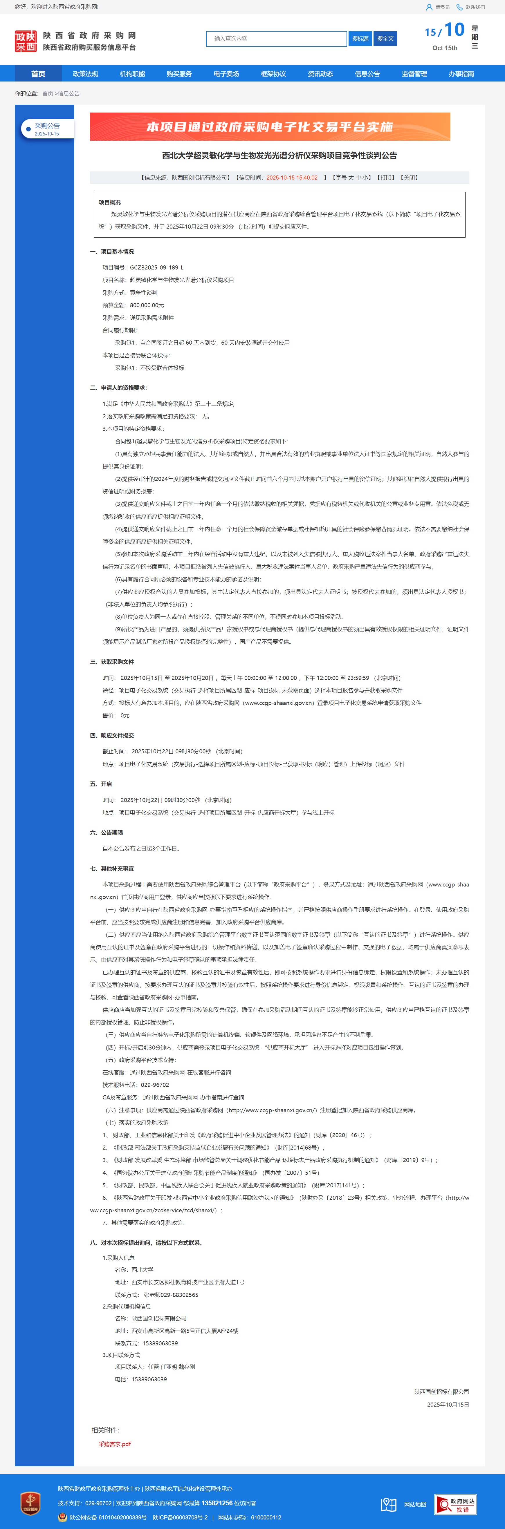 华体会正规平台超灵敏化学与生物发光光谱分析仪采购项目竞争性谈判公告