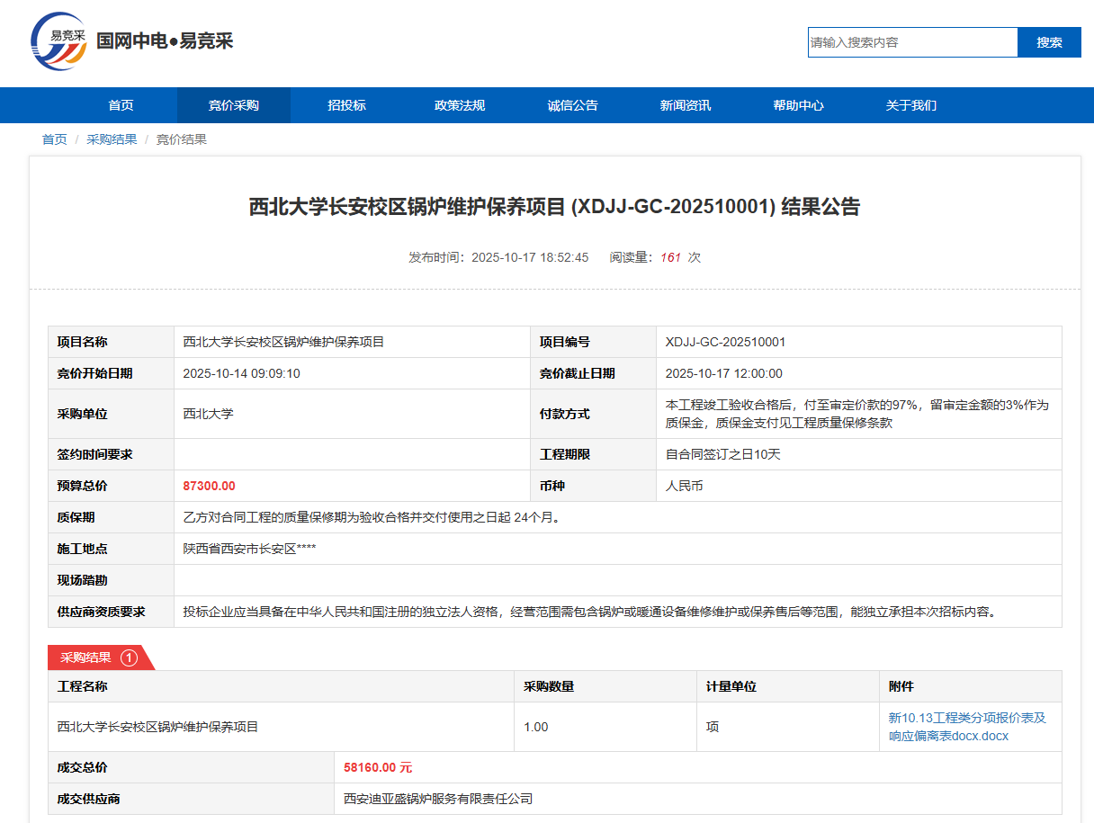 华体会正规平台长安校区锅炉维护保养项目(XDJJ-GC-202510001)竞价结果公告