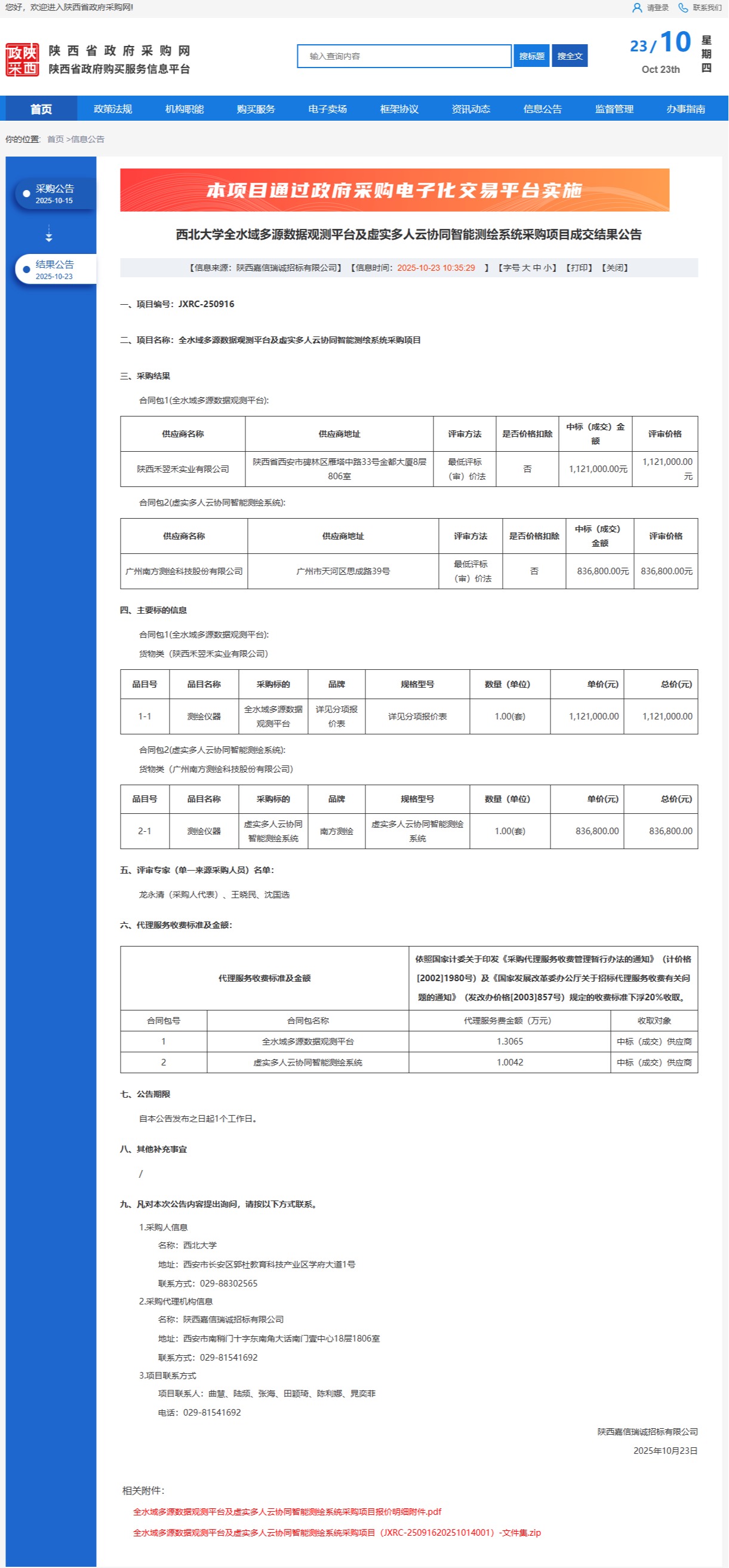 华体会正规平台全水域多源数据观测平台及虚实多人云协同智能测绘系统采购项目成交结果公告